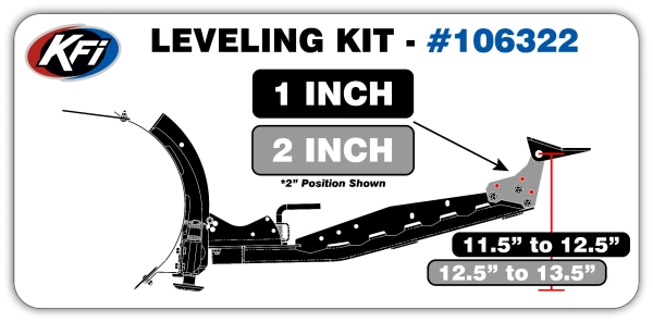 The KFI 1"- 2" UTV SQ push tube leveling kit is made for machine that have small lifts, oversize tires, or Highlifter editions. This allows you to mount your push tube at the correct height so the blade is level.
